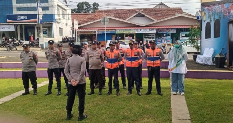 CIAMIS ~ Pos Pengamanan Operasi Lilin Lodaya 2025 Polres Ciamis Polda Jabar di wilayah Kawali melaksanakan apel pagi dalam rangka kesiapsiagaan personel sebelum bertugas melayani masyarakat selama Natal 2025 dan Tahun Baru 2026. Apel pagi ini dilaksanakan di area Taman Surawisesa, Kawali, Kecamatan Kawali, Kabupaten Ciamis, Jawa Barat, Rabu (24/12/2025).