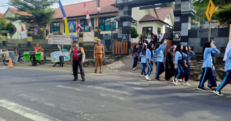 CIAMIS ~ Polsek Cimaragas Polres Ciamis Polda Jabar berikan pelayanan masyarakat saar pagi hari berupa pengaturan arus lalu lintas dengan sasaran anak sekolah. Kegiatan ini dilaksanakan di dua titik jalur pada kendaraan dan lalu lintas orang di wioayah Kecamatan Cimaragas dan Kecamatan Cidolog, Kabupaten Ciamis, Jawa Barat, Rabu (19/11/2025).
