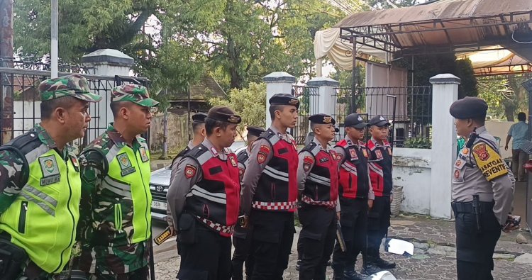 Apel kesiapan pengamanan kegiatan di Gereja Krusten Indonesia Ciamis dipimpin langsung oleh Kasatgas Preventif Ops Lilin Lodaya 2025 Polres Ciamis Iptu Zezen Zaenal Mutaqin, SH., M.M., dan diikuti oleh puluhan personel gabungan TNI-Polri serta elemen masyarakat.