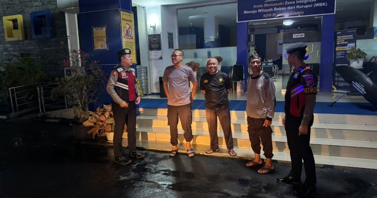 CIAMIS ~ Personel Satuan Samapta Polres Ciamis Polda Jabar melaksanakan Patroli objek vital dalam rangka cipta kondisi antisipasi gangguan kamtibmas. Patroli tersebut dilaksanakan secara mobile oleh unit patroli Sat Samapta Polres Ciamis Polda Jabar, dan menyambangi Kantor Pajak Ciamis, Kabupaten Ciamis, Jawa Barat, Senin, 3 November 2025, malam.