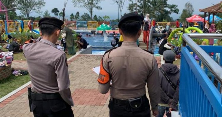 CIAMIS ~ Personel Satuan Samapta Polres Ciamis Polda Jabar melaksanakan kegiatan monitoring sekaligus pengamanan di kawasan Obyek Wisata Air saat momentum Libur Panjang Anak Sekolah, Hari Natal 2025 dan Tahun Baru 2026. Pemantauan ini dilaksanakan di area obyek wisata air, Waterboom Sukahaji, Desa Sukahaji, Kecamatan Cihaurbeuti, Kabupaten Ciamis, Jawa Barat, Senin (22/12/2025).