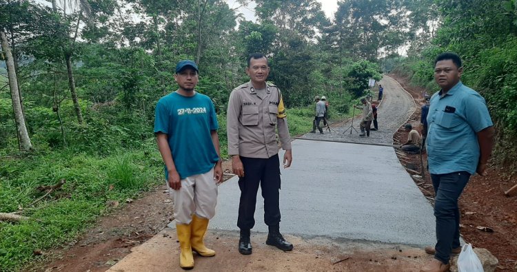 CIAMIS ~ Personel Polsek Sukadana Polres Ciamis Polda Jabar melaksanakan kegiatan humanis dengan hadir memonitoring pembangunan jalan rabat beton. Pembangunan jalan poros desa ini berada di Dusun Cipeundeuy, Desa Margaharja, Kecamatan Sukadana, Kabupaten Ciamis, Jawa Barat, Kamis (30/10/2025).