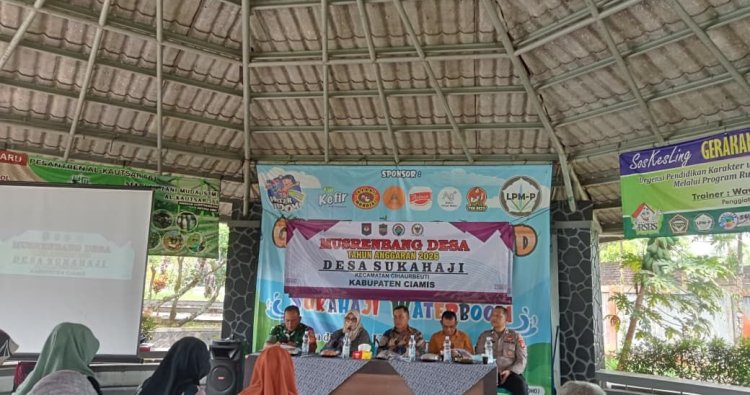 CIAMIS ~ Polsek Cihaurbeuti Polres Ciamis Polda Jawa Barat mengikuti kegiatan Musyawarah Desa tentang Penetapan RKPDes tahun 2026 Desa Sukahaji. Kegiatan tersebut dilaksanakan di Gazebo Waterboom Sukahaji, Desa Sukahaji, Kecamatan Cihaurbeuti, Kabupaten Ciamis, Jawa Barat, Sabtu (11/10/2025).