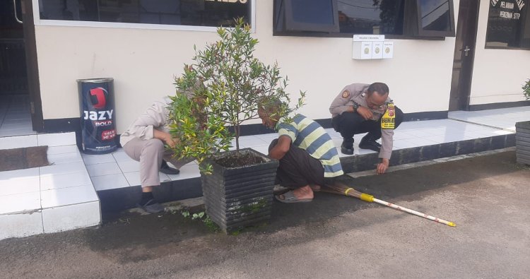 Jadikan Lingkungan Asri, Polsek Cikoneng Polres Ciamis Korve Bersihkan Lingkungan Makopolsek