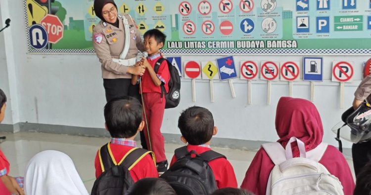 Terlihat dua personel Polwan dan sejumlah anggota dari Satuan Lalu Lintas dengan tawa ceria menyambut para siswa siswi SD Negeri 1 Sindangrasa yang ingin mengetahui mengenai tentang Kepolisian. Mereka hadir diperkenalkan dan edukasi tertib berlalu lintas, macam-macam rambu lalu lintas hingga ruangan pelayanan Unit Lalu Lintas Polres Ciamis Polda Jabar.