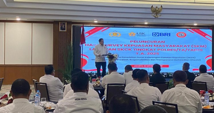 Jakarta – Baintelkam Polri meluncurkan hasil Survei Kepuasan Masyarakat (SKM) layanan SKCK di Hotel Grand Sahid Jakarta, Senin (24/11/1025). Survei yang digelar bersama Pusat Riset Ilmu Kepolisian (Pripol) Universitas Syiah Kuala itu menunjukkan peningkatan signifikan kepuasan publik di tahun 2025.