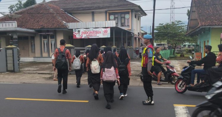 Dimana Aiptu Suharso bersiaga di jalan raya depan SMPN 1 Cipaku. Saat itu anggota turut berkoordinasi dengan petugas keamanan dan pegawai di SMP Negeri 1 Cipaku.