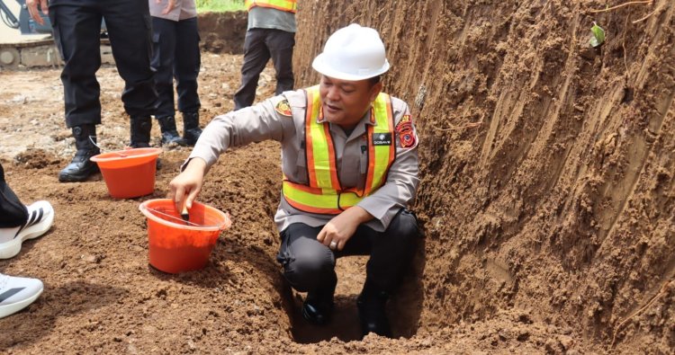 CIAMIS ~ Polres Ciamis Polda Jabar dalam waktu dekat akan segera memiliki arena atau tempat olah raga di lingkungan Markas Kepolisian. Ini ditandai dengan peletakan batu pertama pembangunan Sport Center Tantya Dharaka di Makopolres Ciamis, Jalan Jenderal Sudirman No.271, Sindangrasa, Ciamis, Kabupaten Ciamis, Jawa Barat, Jumat (10/10/2025). Peletakan batu pertama pembangunan ini dilaksanakan langsung oleh Kapolres Ciamis Polda Jabar AKBP H. Hidayatullah, SH., S.I.K., dan didampingi oleh Wakapolres Ciamis Polda Jabar Kompol Sujana, S.Pd., serta Pejabat Utama Polres Ciamis Polda Jabar. Dimana ini turut disaksikan oleh sejumlah personel dan ASN Polri Polres Ciamis Polda Jabar. Kapolres Ciamis Polda Jabar AKBP H. Hidayatullah, SH., S.I.K., mengatakan, peletakan batu pertama ini menjadi tanda dimulainya pembangunan Sport Center Tantya Dharaka. Semoga selama proses pembangunan hingga digunakan diberikan kelancaran dan keamanan bagi semua. "Peletakan batu pertama ini menandai dimulainya pembangunan fasilitas olahraga Sport Center Tantya Dharaka. Semoga diberi kelancaran dan kebermanfaat untuk semua, " kata AKBP H. Hidayatullah. Kapolres Ciamis Polda Jabar menuturkan, Sport Center Tantya Dharaka ini berukuran 17x28 meter. Dimana lapangan yang ada diarena itu akan menjadi pusat kegiatan bagi empat cabang olahraga yang berbeda. Meliputi Bola Basket, Bola Voli, Bulutangkis, dan Tenis Lapangan. "Semoga nantinya keberadaan sport center Tantya Dharaka bisa menggeliatkan semangat berolahraga bagi anggota, maupun penggiat olah raga di Kabupaten Ciamis. Sehingga semua personel dapat selalu sehat dan bugar serta mampu meningkatkan pelayanan yang prima untuk masyarakat. Serta juga mampu meningkatkan sinergitas dan kebermanfaatan Polri untuk masyarakat sehingga Polri semakin dicintai masyarakat, " katanya. Ciamis, Kapolres Ciamis, Polda Jabar.