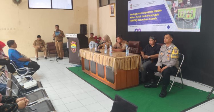 CIAMIS ~ Personel Polsek Ciamis Polres Ciamis Polda Jabar melaksanakan koordinasi dan komunikasi bersama warga dalam rangka cipta kondisi antisipasi gangguan kamtibmas. Kegiatan ini menyasar ke UMKM yang sedang mengikuti kegiatan peningkatan kapasitas yang berlangsung di Aula Kantor Kelurahan Ciamis, Kecamatan Ciamis, Kabupaten Ciamis, Jawa Barat, Selasa (14/10/2025).