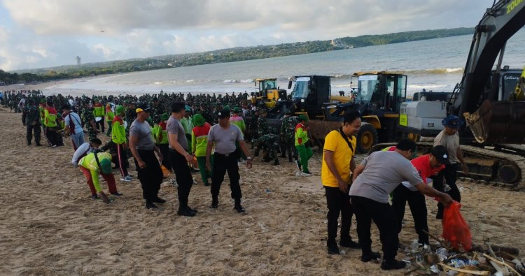 Badung, Bali — Kepolisian Daerah (Polda) Bali bersama TNI dan masyarakat menggelar kegiatan Karya Bakti Pembersihan Pantai dari sampah plastik di kawasan Pantai Kedonganan dan Pantai Kuta, Kecamatan Kuta, Kabupaten Badung, Bali, Selasa (3/2/2026) pagi.