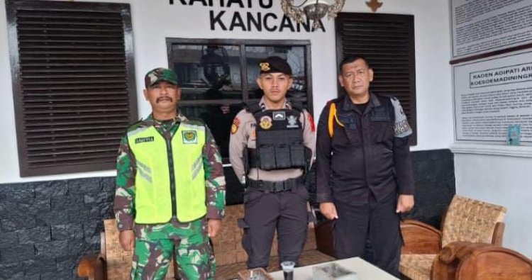 Terlihat Bripda Fatir melakukan koordinasi bersama anggota Babinsa untuk melaksanakan pengamanan di area Lapas Kelas II B Ciamis. Anggota yang bertugas merupakan anggota Polri yang sehari-hari bertugas di Satuan Samapta Polres Ciamis Polda Jabar.