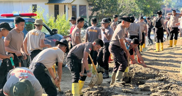 Sumatera Barat - Pada hari Minggu, 18 Januari 2025, Tim SAR Resimen II Pasukan Pelopor BKO Polda Sumbar melaksanakan kegiatan pembersihan area di sekitar sungai yang terdampak bencana banjir bandang di Desa Kampung Tengah, Kecamatan Palembayan, Kabupaten Agam, Provinsi Sumatera Barat.