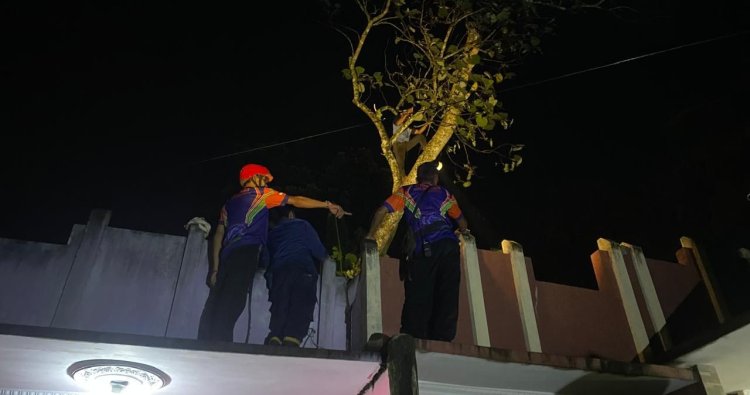 "Peristiwa itu terjadi karena kondisi pohon tak kuat menahan hantaman intensitas hujan cukup tinggi sehingga tumbang menghantam bagian belakang rumah Didi Wahyudi yang juga pemilik pohon. Kami ikut bergotong bersama warga sehingga tidak membutuhkan waktu lama untuk menyingkirkan material pohon tumbang yang menimpa rumah, " kata dia dalam keterangan resminya, Sabtu (20/12/2025).
