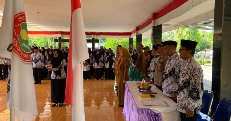 CIAMIS ~ Polsek Banjarsari Polres Ciamis Polda Jabar menghadiri dan monitoring rangkaian kegiatan dalam rangka memperingati Hari Ulang Tahun PGRI dan Hari Guru tingkat Kecamatan Banjaranayar. Salah satunya kegiatan upacara di Desa Langkapsari, Kecamatan Banjaranyar, Kabupaten Ciamis, Jawa Barat, Selasa (25/11/2025).