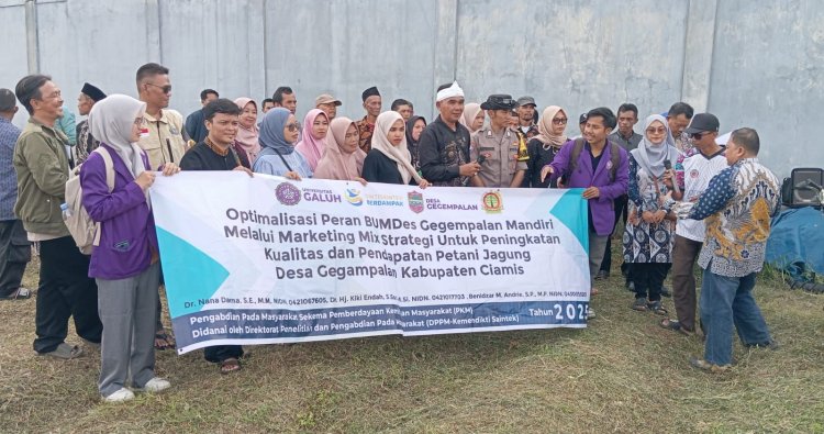 Ciamis – Kepolisian Resor Ciamis melalui jajaran Polsek Cikoneng terus menunjukkan komitmennya dalam mendukung kegiatan pembangunan masyarakat di tingkat desa. Salah satunya dengan turut hadir dalam kegiatan Sosialisasi Optimalisasi Peran Badan Usaha Milik Desa (Bumdes) Gegempalan Mandiri melalui Marketing Mix Strategy untuk peningkatan kualitas dan pendapatan petani jagung yang diselenggarakan oleh Universitas Galuh (Unigal) dan didanai oleh DPPM-Kemendikti Saintek. Kegiatan ini berlangsung di Lahan Bengkok Desa Gegempalan, Kecamatan Cikoneng, pada Kamis (09/10/2025).