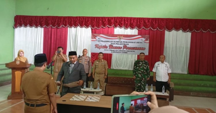 Kegiatan pelantikan dihadiri oleh Camat Cikoneng Heri Rianto, S.Sos., M.Si., perwakilan Danramil 1302 Cikoneng, unsur pemerintahan kecamatan, perangkat desa, Bhabinkamtibmas, Babinsa, serta tokoh agama dan masyarakat Desa Cimari. Pelantikan dilakukan oleh Kepala Desa Cimari Riky Aryana, S.H., dengan rangkaian acara resmi mulai dari pembukaan, pembacaan ayat suci Al-Qur’an, pembacaan SK, pengambilan sumpah, penandatanganan berita acara, sambutan, hingga penutup. Kehadiran kepolisian dalam kegiatan tersebut juga memastikan jalannya acara tetap tertib mengingat pelantikan perangkat desa merupakan momen penting dalam pembangunan tata kelola pemerintahan desa.
