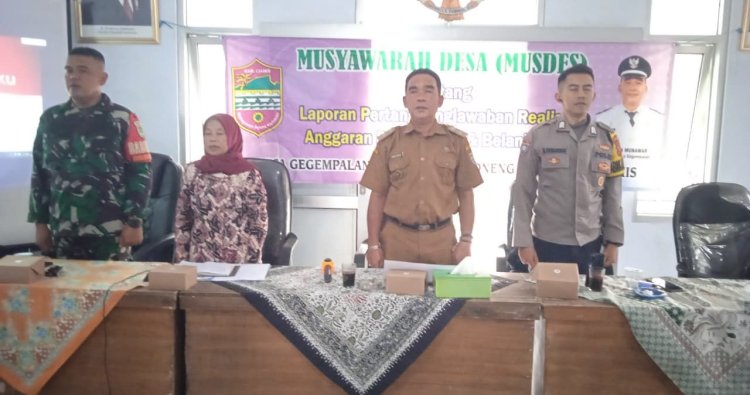 CIAMIS ~ Polsek Sukadana Ciamis Ciamis Polda Jabar mengikuti kegiatan Musyawarah Desa Laporan Pertanggungjawaban Realisasi Anggaran Pendapatan & Belanja Desa, Desa Gegempalan Tahun 2025. Kegiatan itu bertempat di Aula BPD Desa Gegempalan, Kecamatan Cikoneng, Kabupaten Ciamis, Jawa Barat, Selasa, 13 Januari 2026, kemarin.