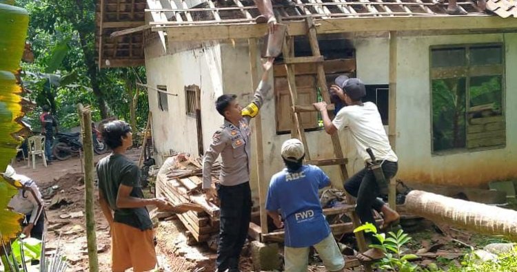 Kegiatan ini dilaksanakan oleh Anggota Polsek Cisaga Polres Ciamis Polda Jabar Aipda Ali Mukti. Anggota hadir bergotong royong bersama warga membersihkan material bangunan rumah Jujun yang mengalami musibah tertimpa pohon tumbang beberapa waktu lalu.