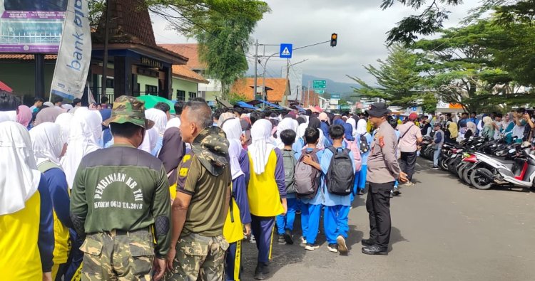 Kegiatan yang diikuti sekitar 1.000 orang ini melibatkan berbagai unsur masyarakat dan instansi, mulai dari jajaran pemerintah kecamatan, TNI, kepala desa, tenaga pendidik, organisasi kepemudaan, tokoh masyarakat, hingga peserta umum. Kapolsek Kawali AKP Hj. Iis Yeni Idaningsih, S.H., M.H., hadir memimpin langsung personel kepolisian yang diterjunkan ke lapangan untuk memastikan seluruh rangkaian kegiatan berjalan dengan aman, tertib, dan kondusif. Kehadiran aparat kepolisian menjadi bagian penting dalam mendukung kelancaran acara berskala besar yang melibatkan banyak peserta dari berbagai usia.