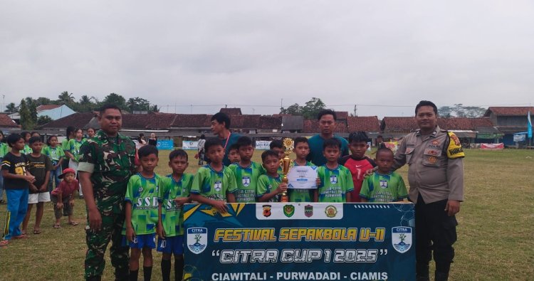 Ciamis – Kepolisian Sektor Lakbok Polres Ciamis kembali menunjukkan peran aktifnya dalam mendukung kegiatan masyarakat, khususnya di bidang olahraga usia dini. Melalui kehadiran Bhabinkamtibmas Desa Purwadadi, Brigadir Diko Pujoko K., S.H., jajaran kepolisian turut mengawal jalannya kegiatan penutupan dan pertandingan final Festival Sepak Bola Citra Cup 1 U-11 yang digelar di Lapangan Bakti Karya, Dusun Ciawitali, Desa Purwadadi, Kecamatan Purwadadi, Kabupaten Ciamis, pada Minggu (12/10/2025).