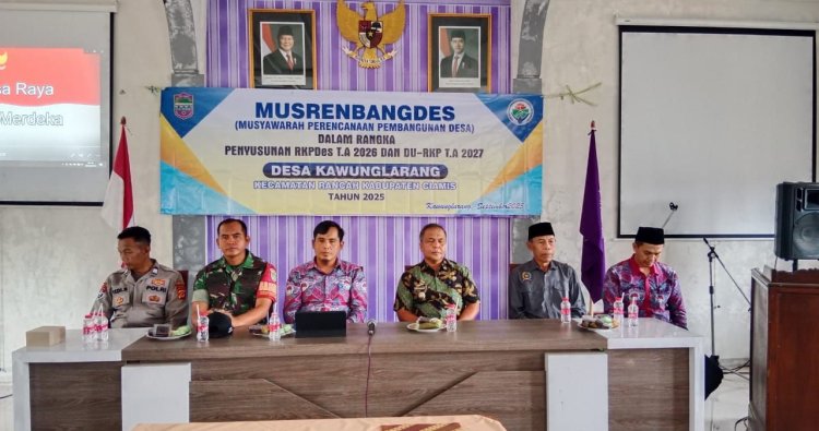 Kegiatan Musrenbangdes ini dilaksanakan dalam rangka penyusunan Rencana Kerja Pemerintah Desa (RKPDes) Tahun 2026 serta Daftar Usulan Rencana Kerja Pemerintah (DU-RKP) Tahun 2027. Musyawarah tersebut dihadiri oleh berbagai unsur pemerintahan dan masyarakat desa, termasuk Camat Rancah, Pelaksana Tugas Kepala Desa Kawunglarang, Ketua Badan Permusyawaratan Desa (BPD), Pendamping Desa, Babinsa, serta Bhabinkamtibmas Desa Kawunglarang yang mewakili Polsek Rancah.