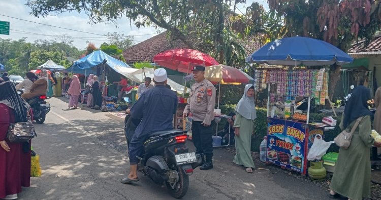CIAMIS ~ Polsek Sukadana Polres Ciamis Polda Jabar melaksanakan pengaturan lalu lintas saat momemtum acara pengajian bulanan tingkat kecamatan. Anggota bersiaga di area Gedung Dakwah, Jalan raya Ciilat-Baregbeg, Kecamatan Sukadana Kabupaten Ciamis, Jawa Barat, Selasa (14/10/2025).