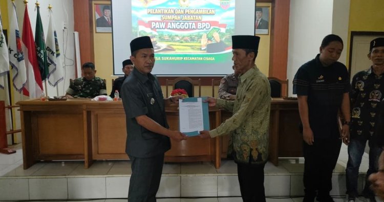 CIAMIS ~ Polsek Cisaga Polres Ciamis Polda Jabar menghadiri pelantikan dan Pengukuhan Pergantian Antar Waktu BPD Desa Sukahurip. Pelantikan ini berlangsung di Aula Kantor Desa Sukahurip, Kecamatan Cisaga, Kabupaten Ciamis, Jawa Barat, Sabtu (20/12/2025).
