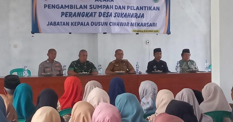 CIAMIS ~ Polsek Rajadesa Polres Ciamis Polda Jabar menghadiri pelantikan Kepala Dusun di Desa Sukaharja. Pelantikan ini berlangsung di Aula Kantor Desa Sukaharja, Kecamatan Rajadesa, Kabupaten Ciamis, Jawa Barat, Selasa (7/10/2025).