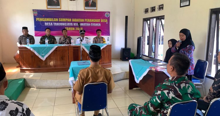 Saat itu, Aipda Ali Mukti hadir mewakili Kapolsek Cisaga AKP Misman Asep Zaenal, S.Sos., untuk menyaksikan prosesi pelantikan Kepala Urusan Tata Usaha dan Umum. Sementara prosesi pelantikan dan pengambilan sumpah janji jabatan ini dipimpin langsung oleh Camat Cisaga dan dihadiri oleh sejumlah unsur pimpinan tingkat Desa Tanjungjaya serta elemen masyarakat Desa Tanjungjaya.